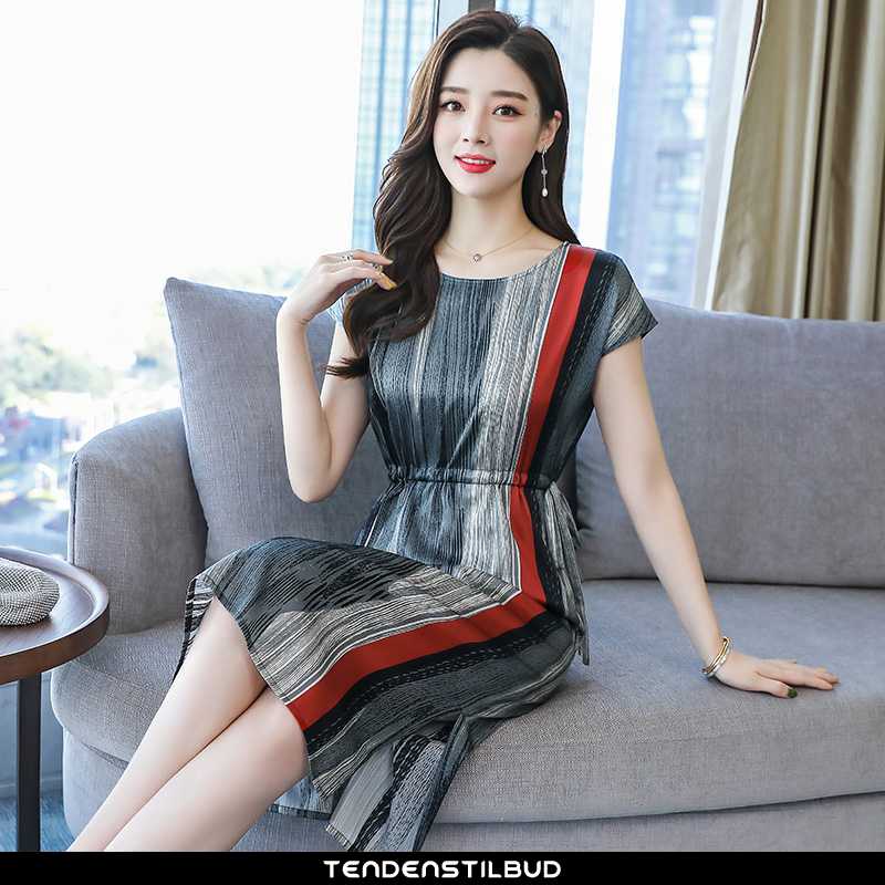 Kjoler dame : kjole behagelige kortærmet lang sommer 2021 ren rund hals midt talje farve grå midten, farve : rød, grå.