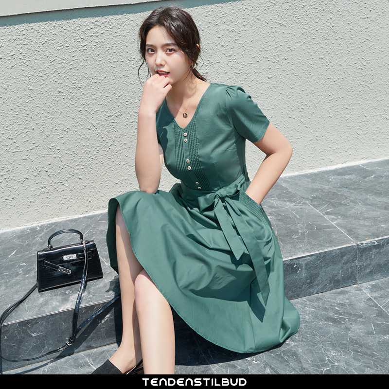 Kjoler dame : kjole mode lang sommer 2020 ren simple elegante hver dag lyserød midten, farve : lyserød, mørkeblå, grøn.