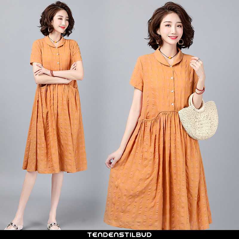 Kjoler dame : kjole mode kortærmet elegante trend lang sommer 2020 personlighed orange midten, farve : orange, gul.
