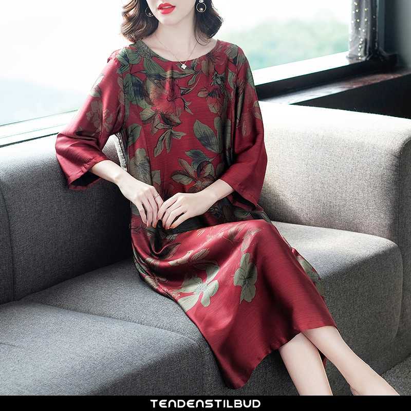 Kjoler dame : kjole tryk lette tynd sommer 2020 nye store størrelser kvinder gaze rød, farve : bordeaux, sort.