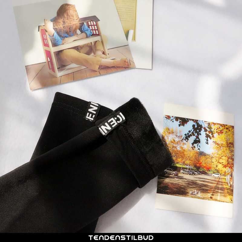 Leggings dame : varm casual skinny slim fit trend vinter forårs 2020 plus cashmere ren kvinde alt matcher sort, farve : sort.