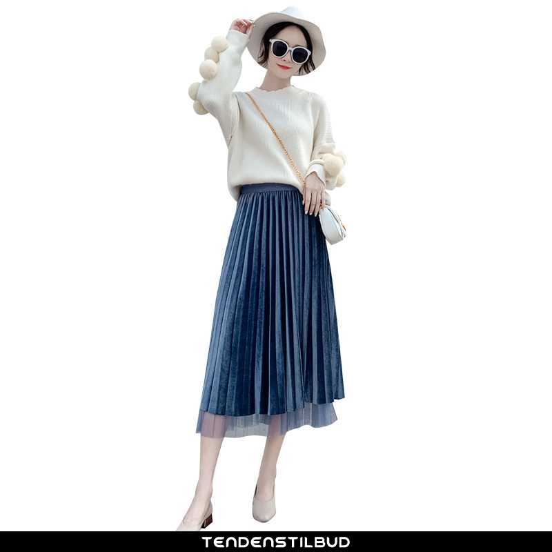Nederdel dame : velour mode vinter 2021 mørkeblå vendbar plisseret ny guld, farve : mørkeblå, grå, brune, sort.
