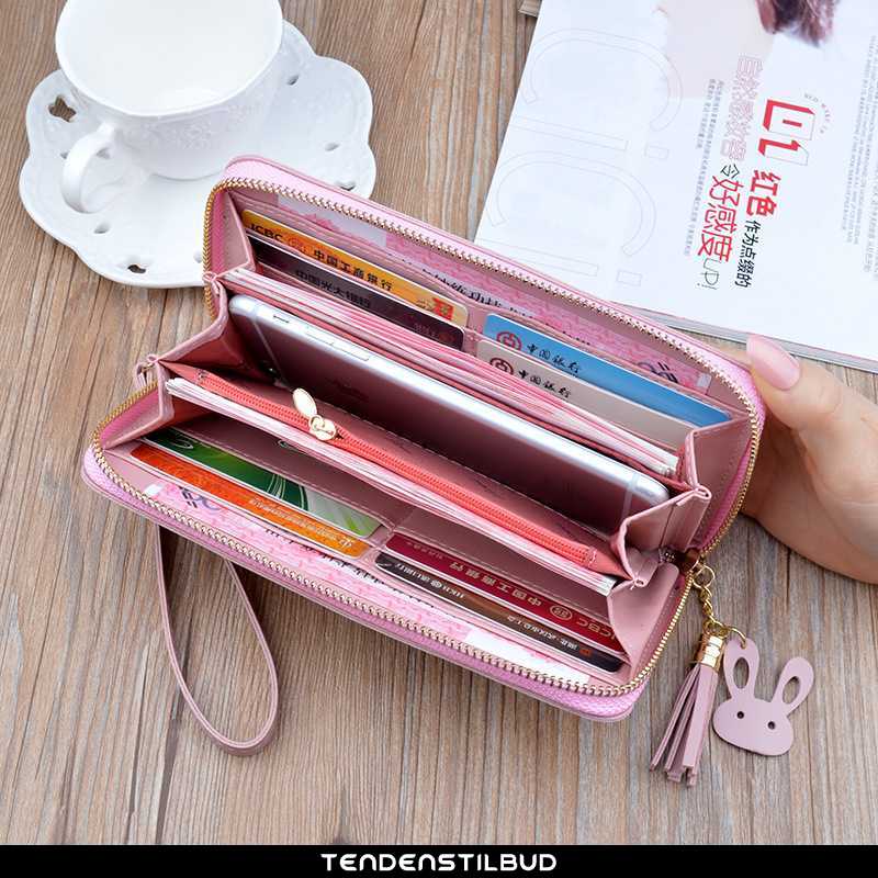Pung dame : tegnebog mode med lynlås lang 2020 stor kapacitet kvinde lyserød telefon ny kvinder, farve : sort, blå, grøn, rød, lyserød, lyserød.