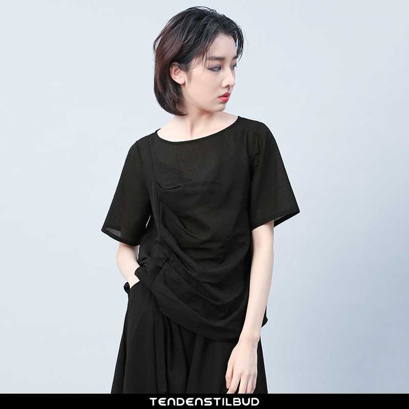 Skjorte dame : blonder chiffon mode behagelige kortærmet elegante trend sommer 2020 ren sort, farve : ren hvid, sort.