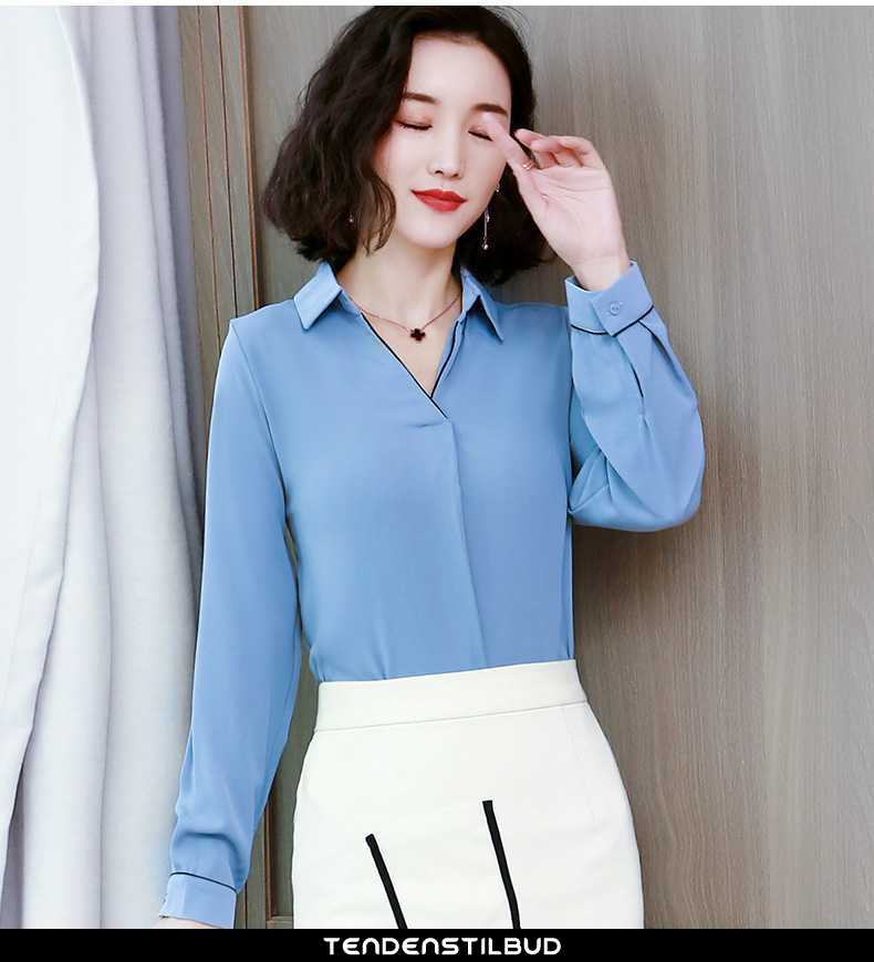 Skjorte dame : chiffon slim fit forårs 2020 hvid alt matcher ny lille sektion, farve : ren hvid, mørkeblå, militærgrøn.