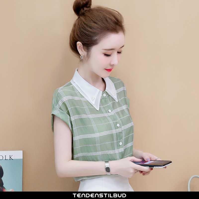 Skjorte dame : blonder chiffon mode behagelige kortærmet trend sommer 2020 personlighed elegante grøn, farve : turkis, lyserød, gul.
