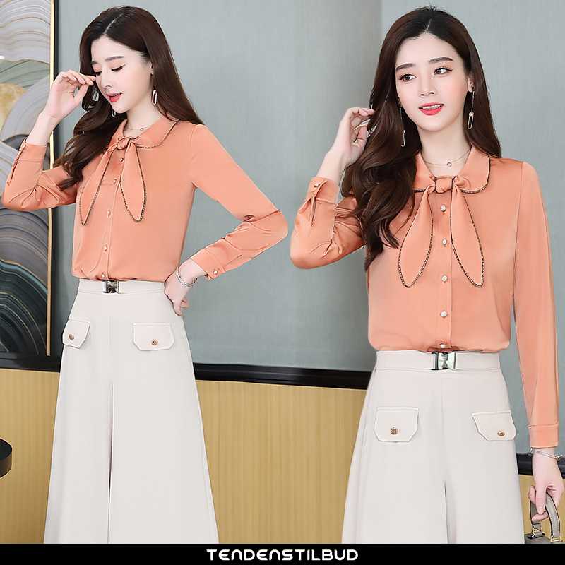 Skjorte dame : blonder chiffon mode langærmet elegante trend forårs 2020 personlighed simple orange, farve : orange, turkis, beige.