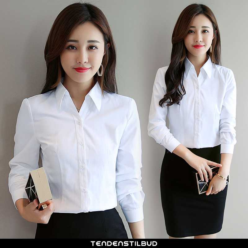 Skjorter dame : bluser skjorter bomuld straight langærmet broderi ren hvid med knapper sød rund hals, farve : ren hvid.