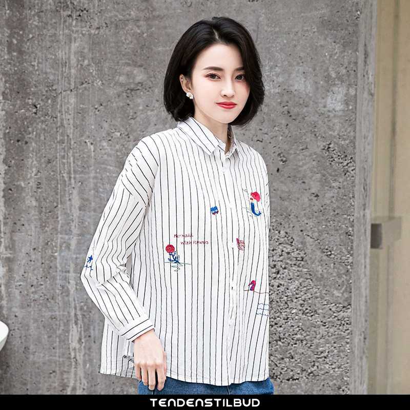Skjorter dame : bluser skjorter stribet broderi blomstret sommer 2020 ren hvid, farve : hvid sort, ren hvid.