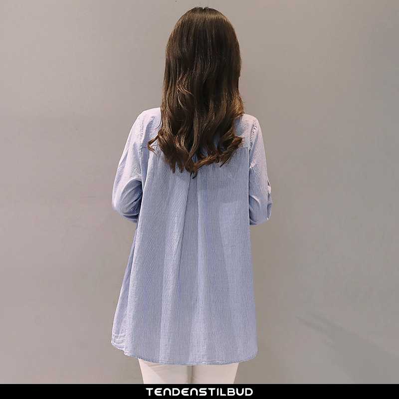 Skjorter dame : bluser skjorter straight langærmet 2020 med knapper blå alt matcher flagermus ærme, farve : blå.