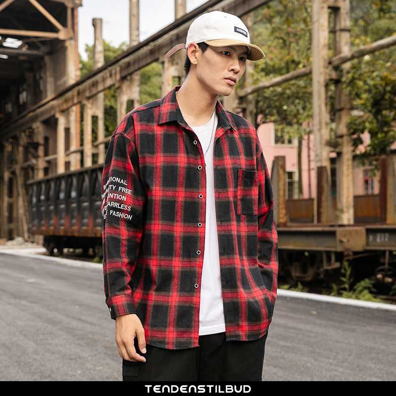 Skjorter herre : bluser skjorter skjorte langærmet ternet trend 2021 ny mænd grøn, farve : rød, sort, grøn.