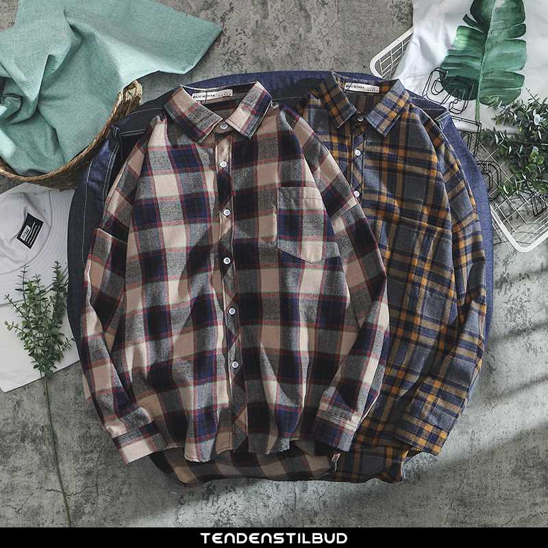 Skjorter herre : bluser skjorter skjorte casual løse vintage langærmet trend forårs studerende ternede smuk ny mænd gul, farve : grå, khaki, gul.