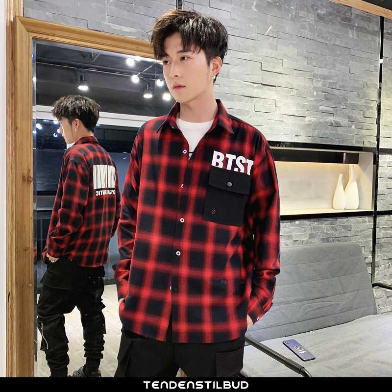 Skjorter herre : bluser skjorter frakke skjorte løse langærmet cargo trend studerende mesh mænd rød, farve : sort, bordeaux.