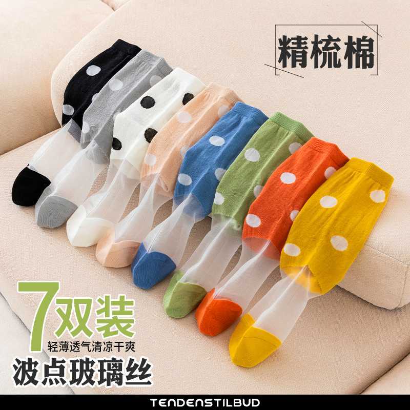 Sokker dame : kort sokker lange sokker trend tynd sommer punktum hvid kvinde krystal bølge punkt gennemsigtig mid kvinder, farve : lyserød, blå, rød, sort, grøn, lyserød.