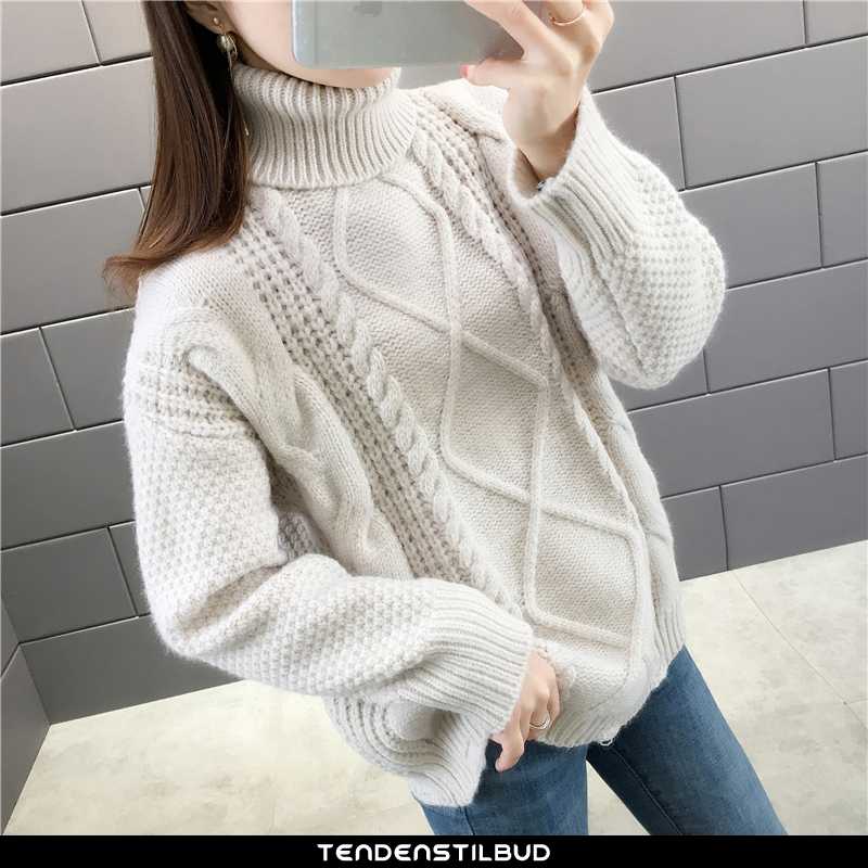 Sweatere dame : varm casual behagelige vinter 2021 ren personlighed elegante alt matcher, farve : grå sort, blå, hvid beige, rød.