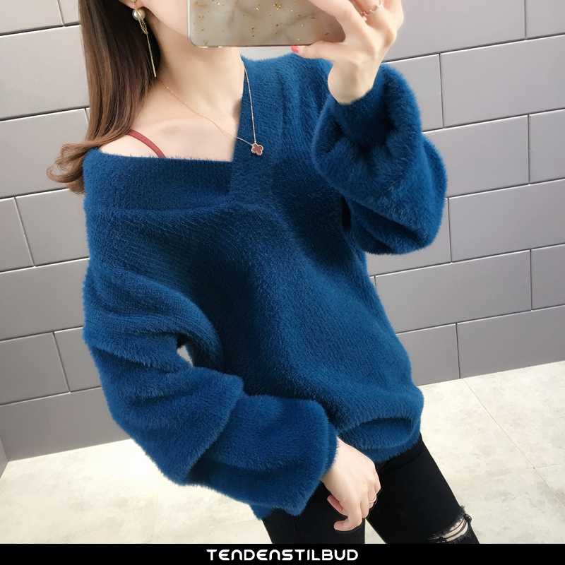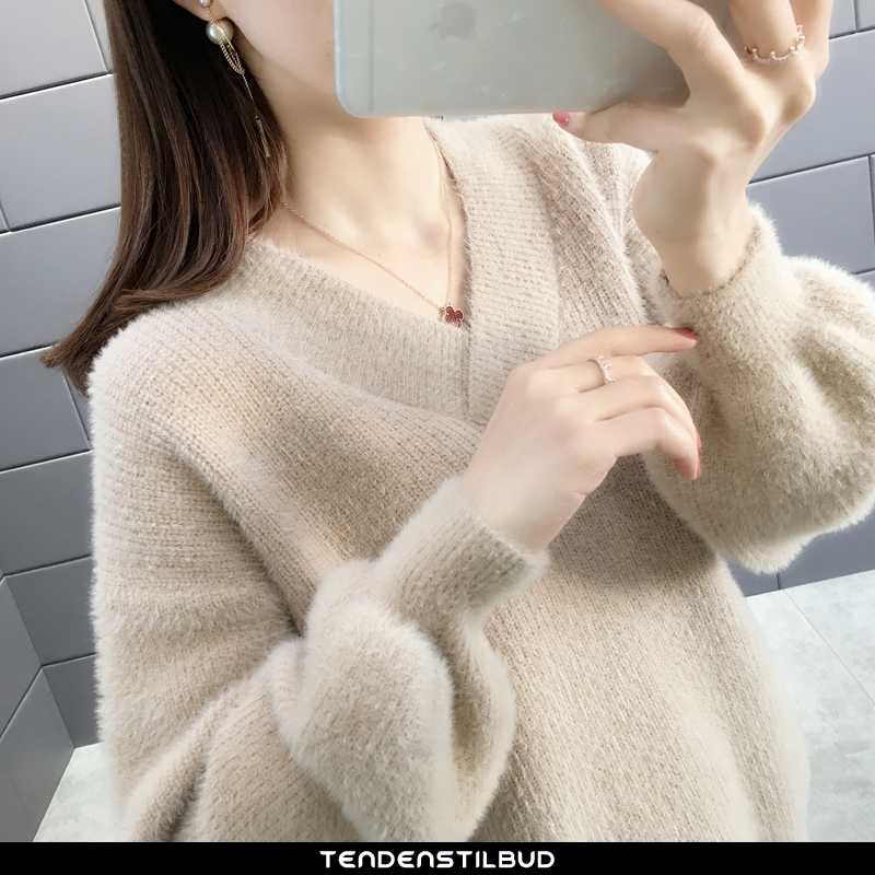 Sweatere dame : casual behagelige langærmet vinter 2021 ren personlighed alt matcher damer sort, farve : sort, beige, mørkeblå.