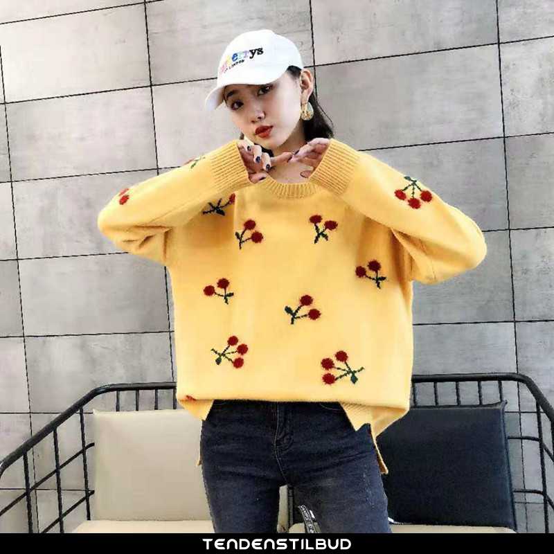 Sweatere dame : frakke sweater strikket tryk simple alt matcher rund hals pullover ny baby gul, farve : ren hvid, lyserød, sort, gul, beige, blå.