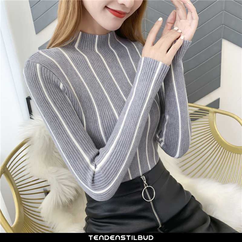 Sweatere dame : casual stribet behagelige vinter 2021 brun ren personlighed alt matcher midten, farve : ren hvid, turkis, brune.