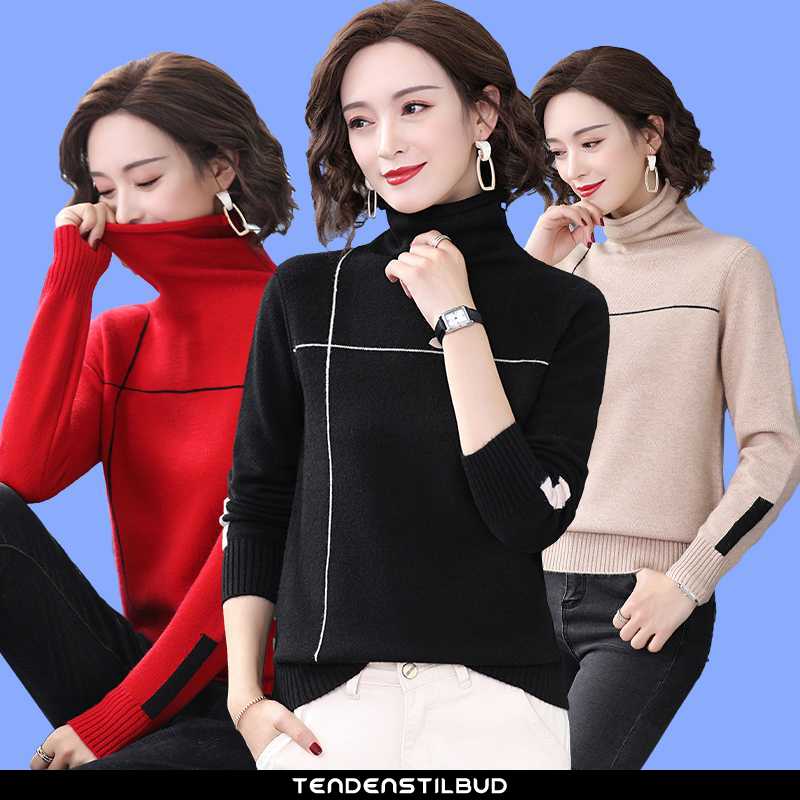 Sweatere dame : striktrøjer sweater varm casual løse mode behagelige elegante trend høj krave personlighed alt matcher gul, farve : sort, bordeaux, gul, brune, turkis, gul.