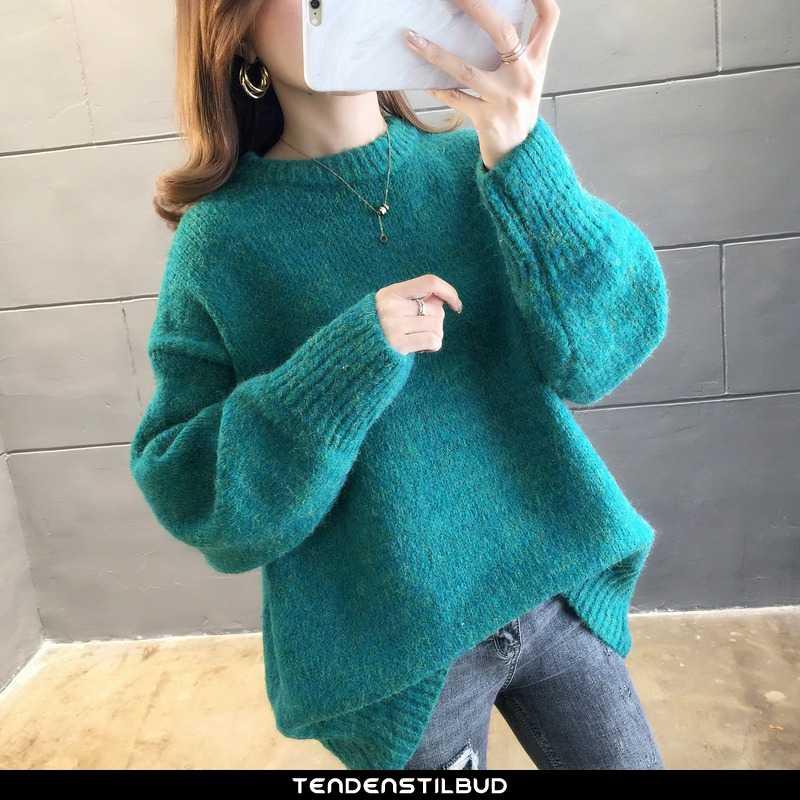 Sweatere dame : striktrøjer sweater løse mode langærmet elegante trend 2021 khaki, farve : orange rød, khaki, blå, gul lyse.