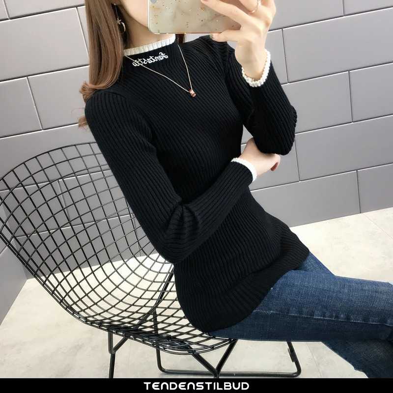 Sweatere dame : striktrøjer sweater casual mode langærmet trend vinter 2021 simple elegante lyserød, farve : ren hvid, lyserød, sort, bordeaux.