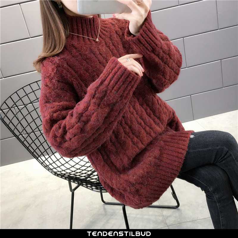 Sweatere dame : sweater vinter 2021 ny rød, farve : grå, sort, bordeaux.
