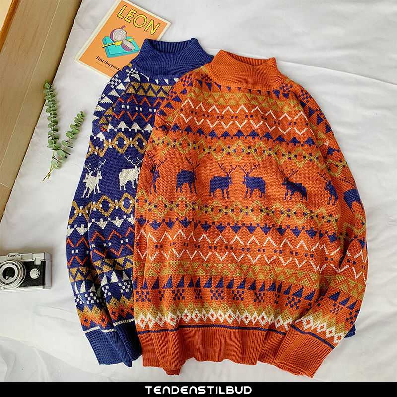Sweatere herre : striktrøjer sweater casual løse mørkeblå studerende høj krave super mesh mænd rød, farve : ren hvid, mørkeblå, orange.