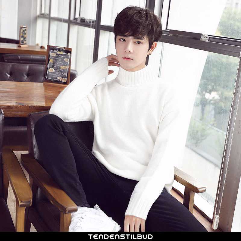 Sweatere herre : striktrøjer sweater casual løse trend vinter 2021 jakke høj krave ren smuk ny mænd sort, farve : hvid, khaki, sort, mørkeblå.