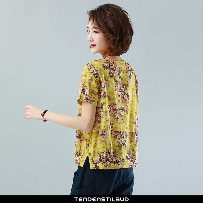 T-shirts dame : løse mode kortærmet skinny forårs 2020 simple elegante rund hals farve gul, farve : rød, gul, blå.