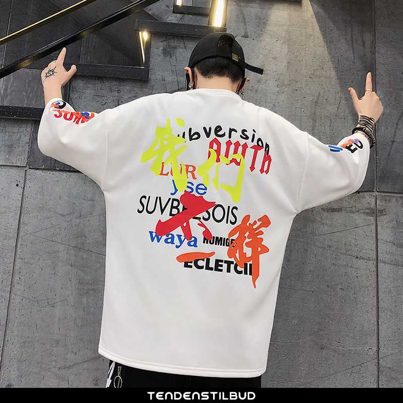 T-shirts herre : løse vintage kortærmet tryk trend 2020 halv ærme ny original sort, farve : hvid, sort.