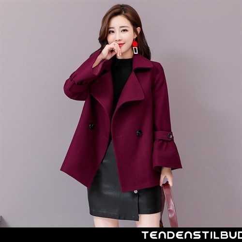 Uldfrakke dame : frakke casual mode behagelige uld trend 2020 flared ren ærme rød, farve : rød, lilla, grøn mørke, gul.