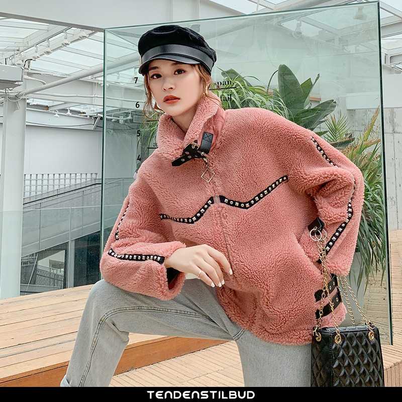 Uldfrakke dame : frakke løse mode uld elegante trend korte 2021 ren lyserød, farve : rød, khaki.