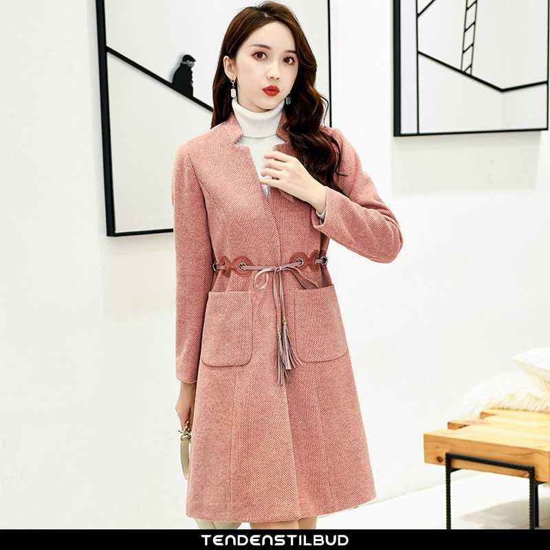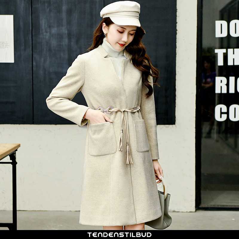 Uldfrakke dame : frakke mode langærmet uld lang 2021 alt matcher ny midten gul, farve : lyserød, gul, beige.
