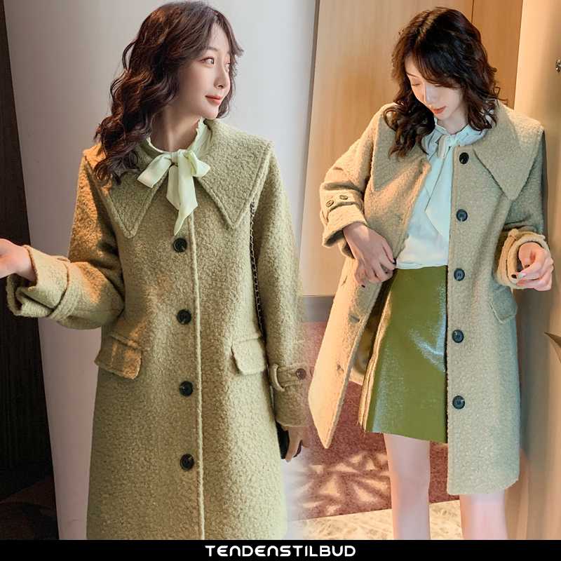 Uldfrakke dame : frakke mode uld tykke vinter lang 2021 ny stor midten gul, farve : gul, grøn, lyserød.