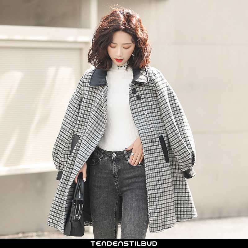 Uldfrakke dame : frakke uld skinny slim fit vinter 2021 simple ternede ny grå kvinder, farve : grå, gul.