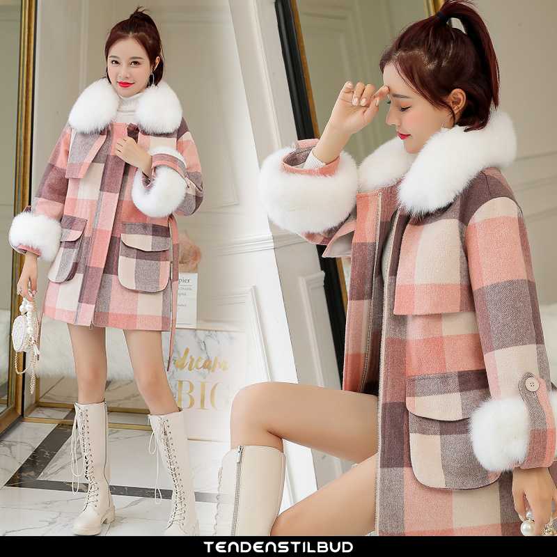 Uldfrakke dame : frakke uld skinny slim fit vinter lang 2021 ternede lyserød ny midten kvinder, farve : lyserød, sort.