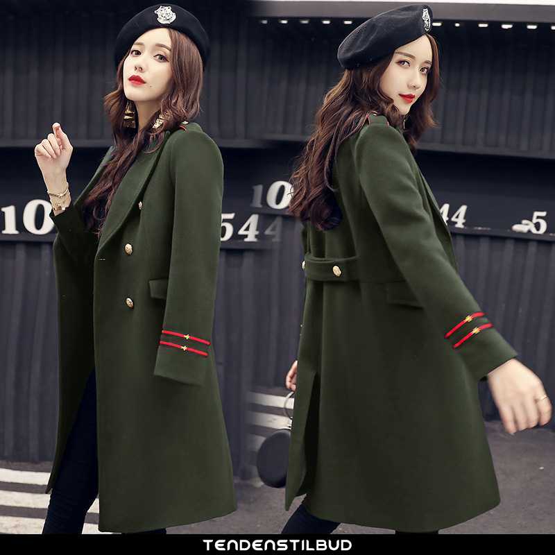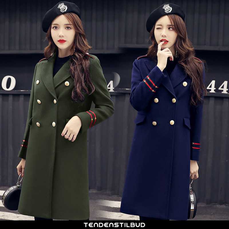 Uldfrakke dame : frakke stribet skinny slim fit personlighed navy overtøj elegante alt matcher kvinder grøn, farve : mørkeblå, militærgrøn.
