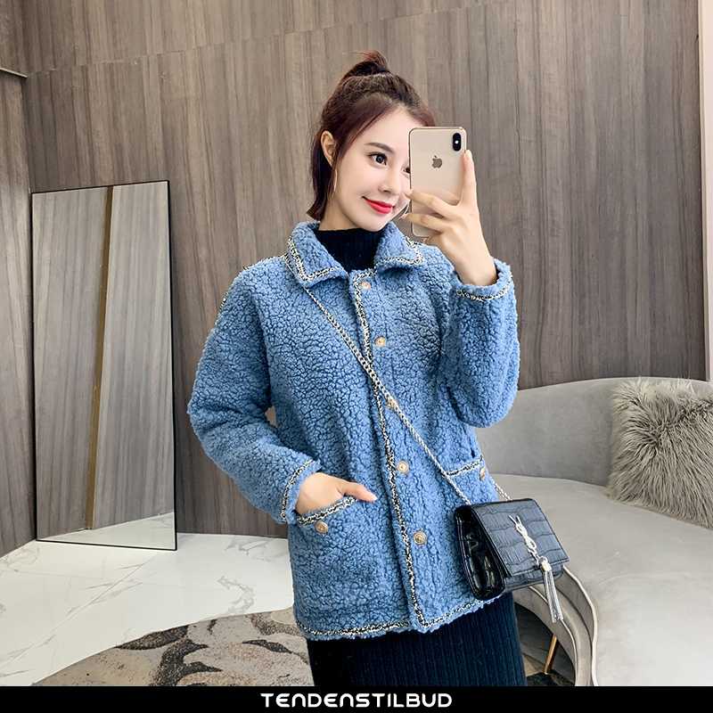 Uldfrakke dame : frakke mode trend korte damer simple alt matcher revers, farve : mørkeblå, hvid beige.