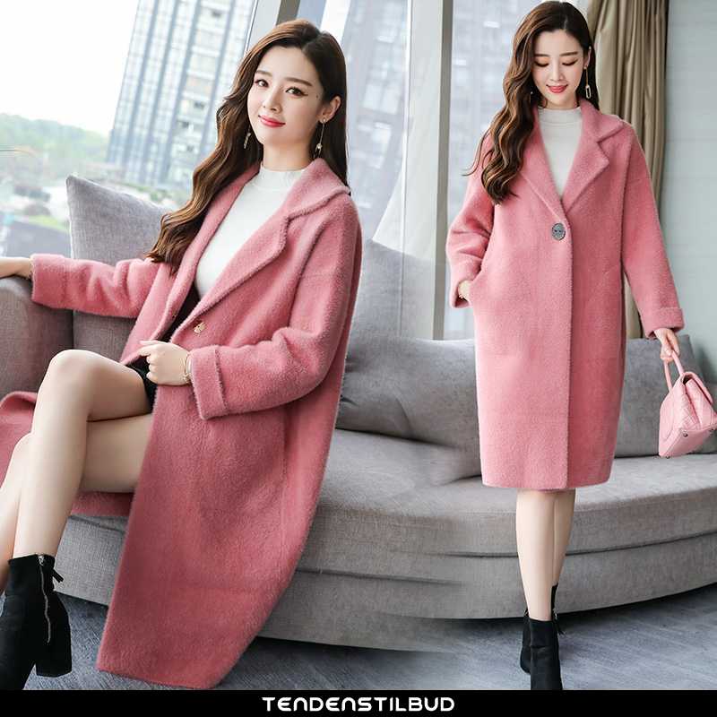 Uldfrakke dame : frakke langærmet uld skinny slim fit trend 2020 mørkeblå ren personlighed simple alt matcher, farve : lyserød, mørkeblå, hvid beige.