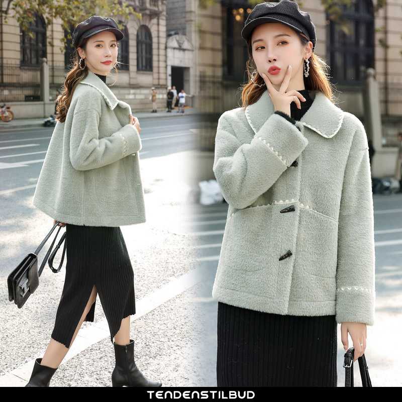 Uldfrakke dame : frakke mode uld trend vinter korte 2021 alt matcher duftende ny lille sektion grøn, farve : grøn, khaki, hvid.