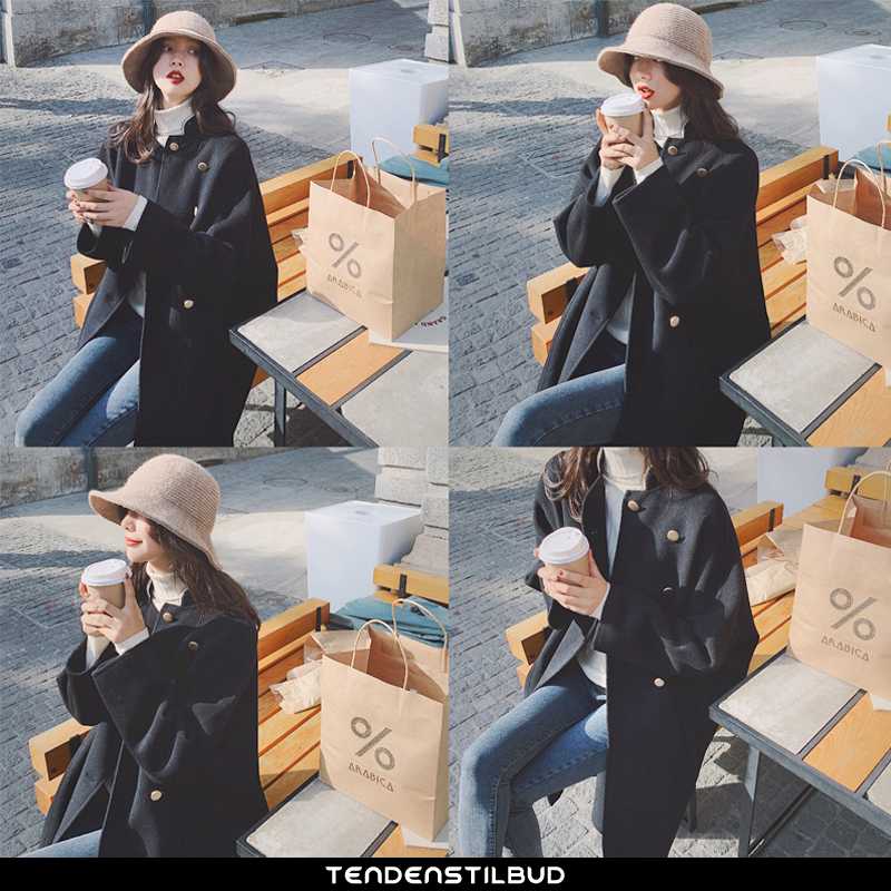 Uldfrakke dame : frakke uld vinter sort, farve : sort.