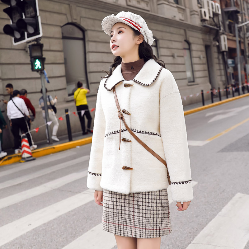 Uldfrakke dame : frakke mode vintage vinter korte 2021 simple hvid alt matcher duftende nye lille sektion bovini, farve : ren hvid.