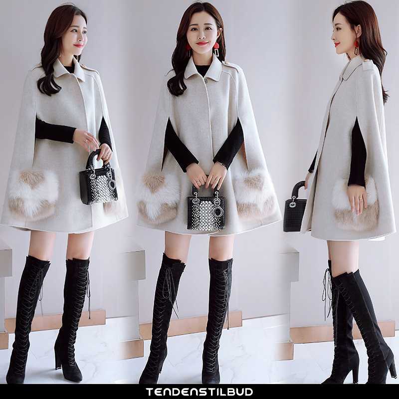 Uldfrakke dame : frakke mode uld trend vinter 2020 personlighed lommer blå alt matcher ny stor, farve : mørkeblå, beige.