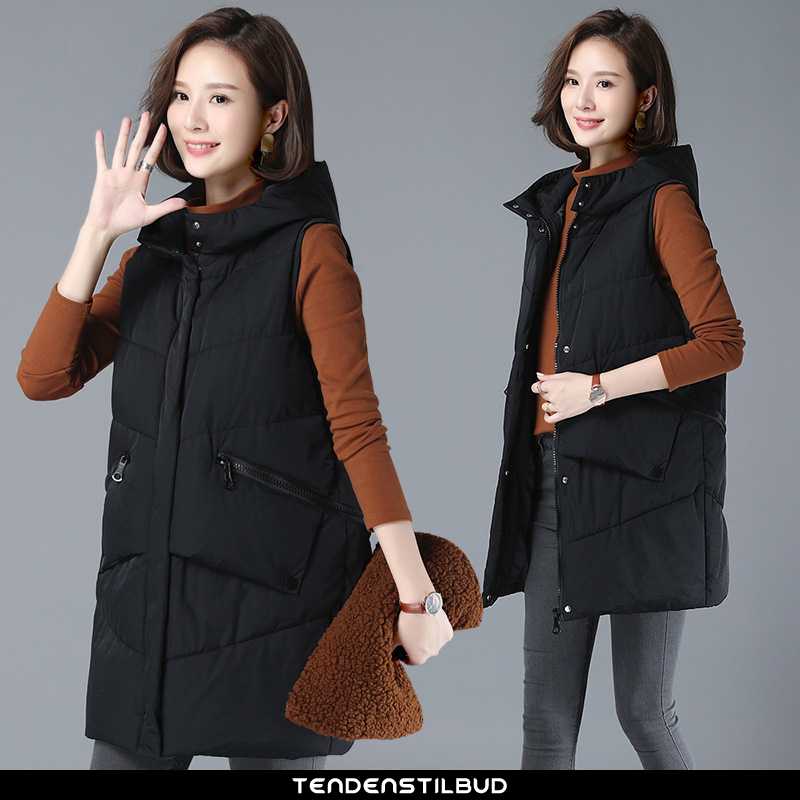 Vest dame : casual mode trend vinter lang 2021 personlighed elegante midten sort, farve : beige, sort.