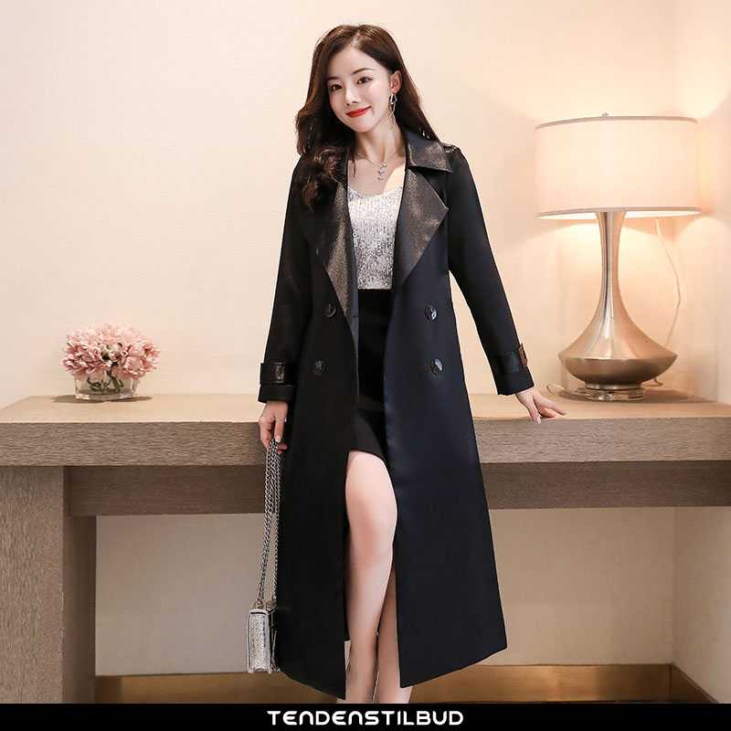 Vindjakke dame : trenchcoat mode behagelige elegante trend lang forårs 2020 ren simple midten sort, farve : sort, bordeaux, grøn.
