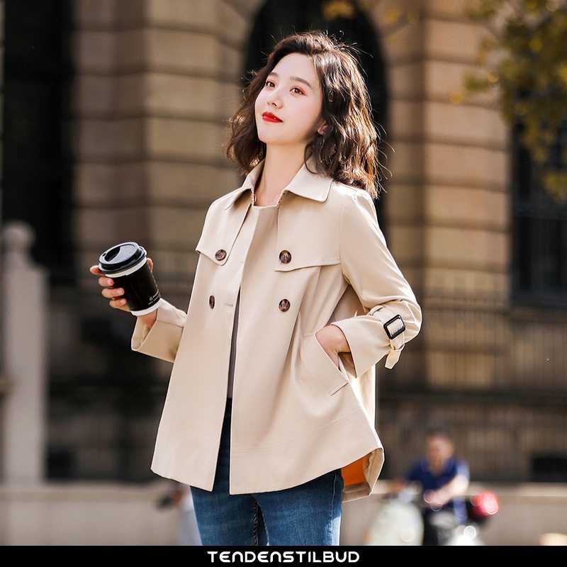 Vindjakke dame : frakke trenchcoat mode slim fit korte forårs 2020 khaki alt matcher ny lille sektion kvinder, farve : khaki.