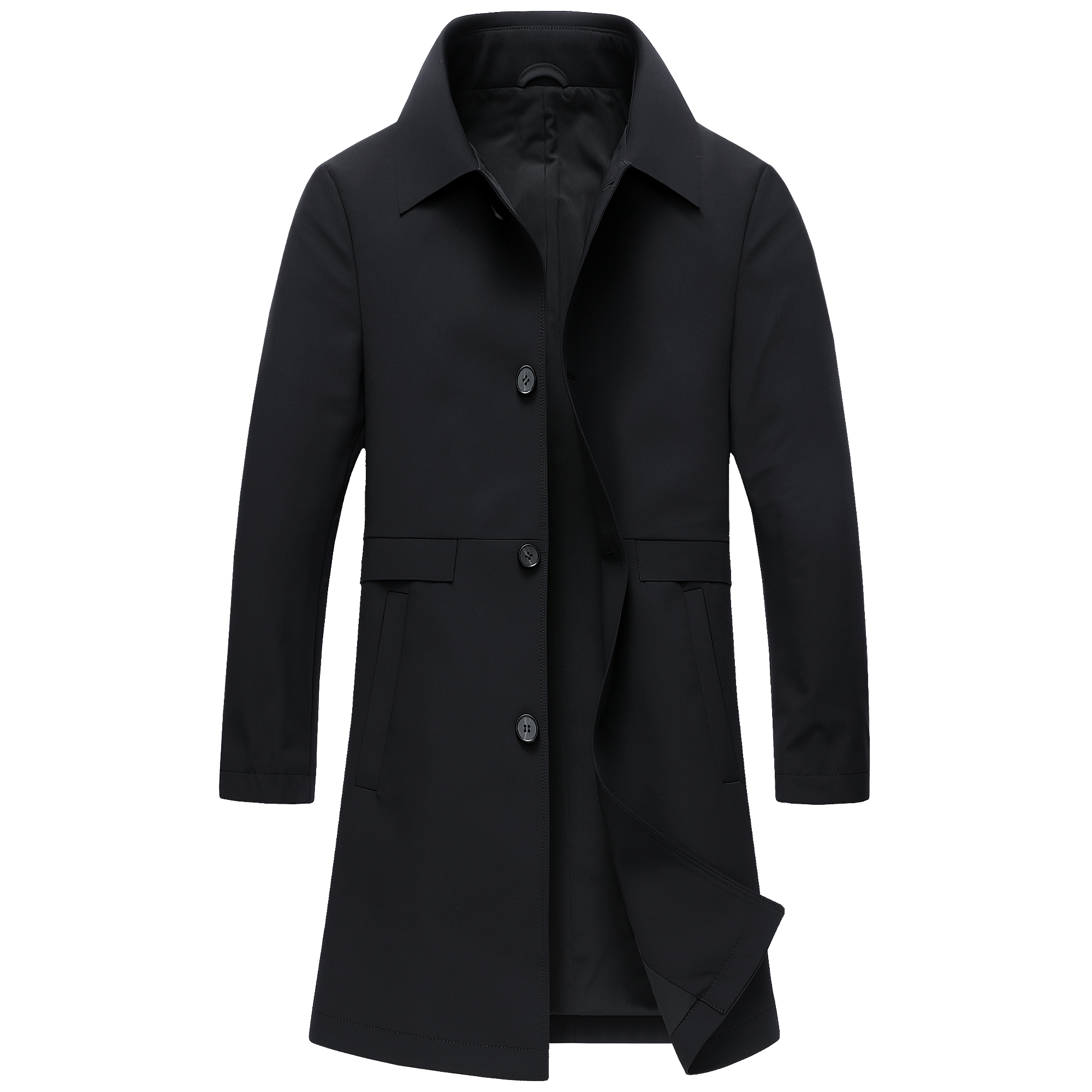 Vindjakke herre : frakke trenchcoat casual mode business slim fit trend lang elegante midten mænd sort, farve : sort.