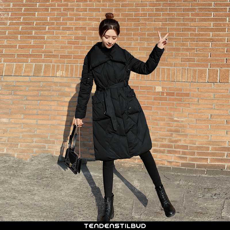 Vinterjakke dame : bomuld jakke bomuldsjakke bomuld mode vinter lang 2021 damer elegante stramme duftende ny lille sektion midten kvinder, farve : sort, beige.