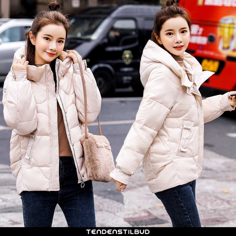 Vinterjakke dame : bomuld jakke varm mode med hætte med lynlås vinter 2021 ren, farve : sort, turkis, beige.