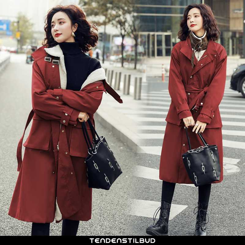 Vinterjakke dame : bomuld jakke med lynlås slim fit vinter lang 2021 høj krave ren hver dag ny midten rød, farve : sort, khaki mørke, bordeaux.